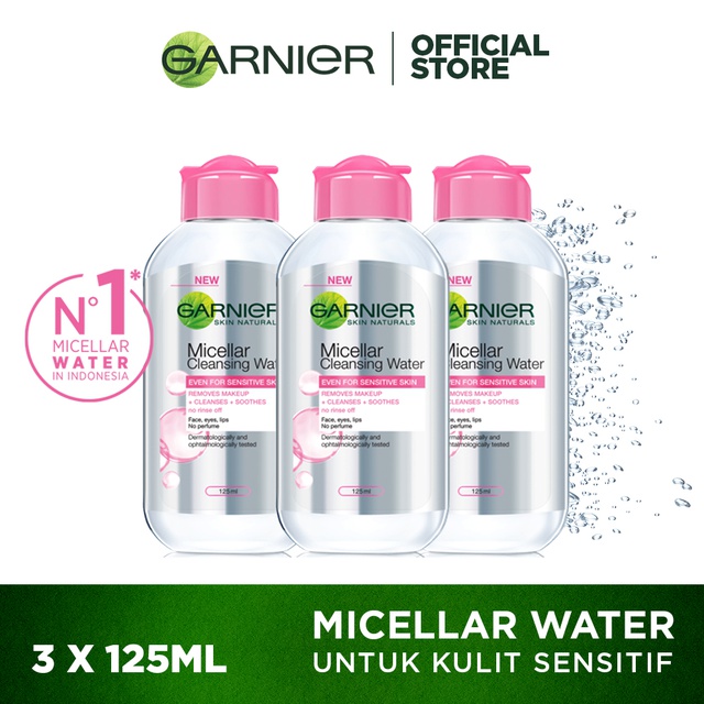 Kelebihan - Kelebihan membeli Garnier Micellar Water Pink - 125 ml x 3pcs - Skincare Pembersih Wajah Kulit Sensitif di Toko ini