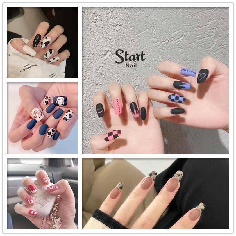 24PCS/SET Simulasi Lem Alpukat Memakai kuku palsu R Perawatan Kuku Palsu